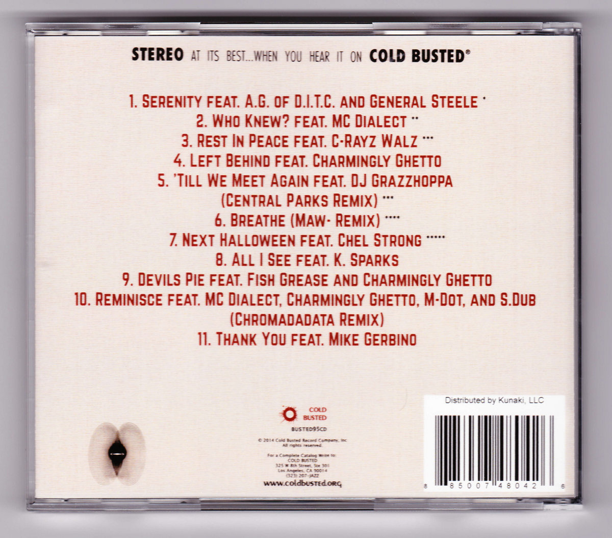 Es-K (Essential Knowledge) was born in Holland, raised in Kansas City Missouri, and currently lives in Burlington Vermont. You may know him from his Spontaneous Grooves series on Cold Busted. Serenity is his first album and features A.G. of D.I.T.C, General Steele, MC Dialect, C-Rayz Walz, Charmingly Ghetto, DJ Grazzhoppa, Central Parks, Maw-, Chel Strong, K. Sparks, Fish Grease, M-Dot, S.Dub, Chromadadata, and Mike Gerbino.